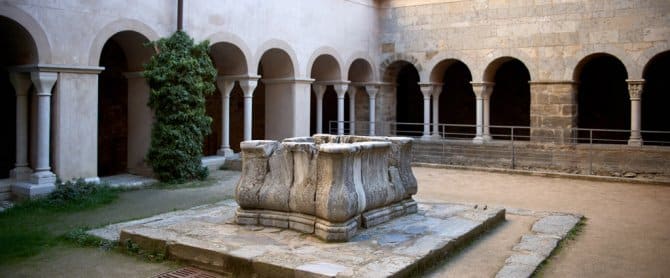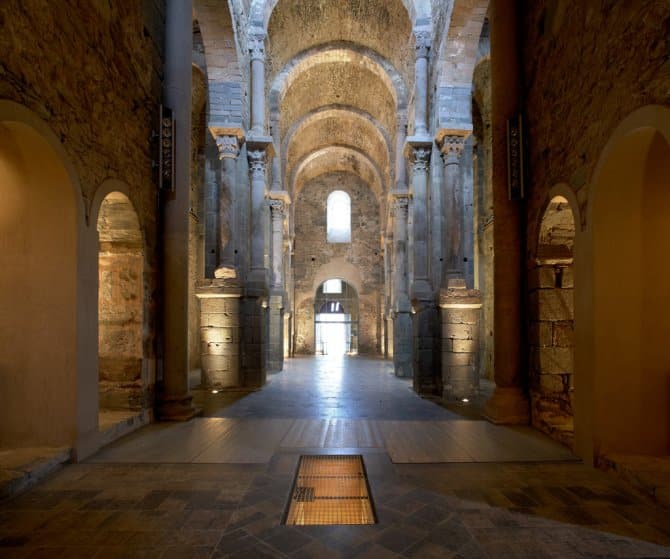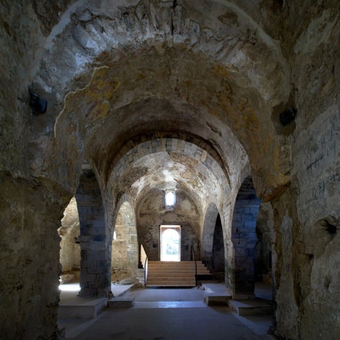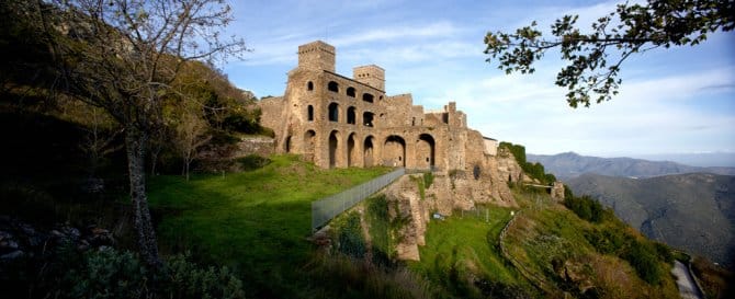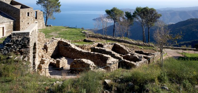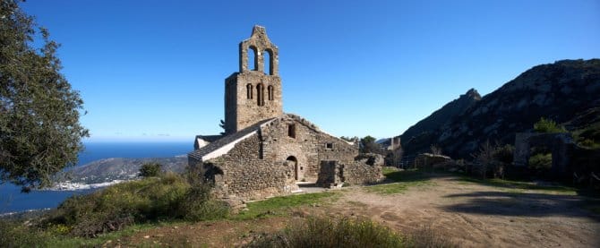 At the top of the Verdera sierra in the Cap de Creus nature reserve, commanding a spectacular view of Roses bay, stands a monumental complex of great interest for discovering the Mediaeval world. The heart of it is Sant Pere de Rodes monastery, whose most important element is the church, a key work of Catalan Romanesque. Its outstanding features are the two superimposed cloisters and the rooms with unique views of this whole stretch of the Mediterranean coast. Hard by is Santa Helena church in the middle of the Mediaeval village of Santa Creu de Rodes, in a strategic position overlooking an impressive landscape. It was the location for two feature films: Jesús Pascual’s “La banda del pecas” (1968) and Glauber Rocha’s “Cabezas cortadas” (1970).