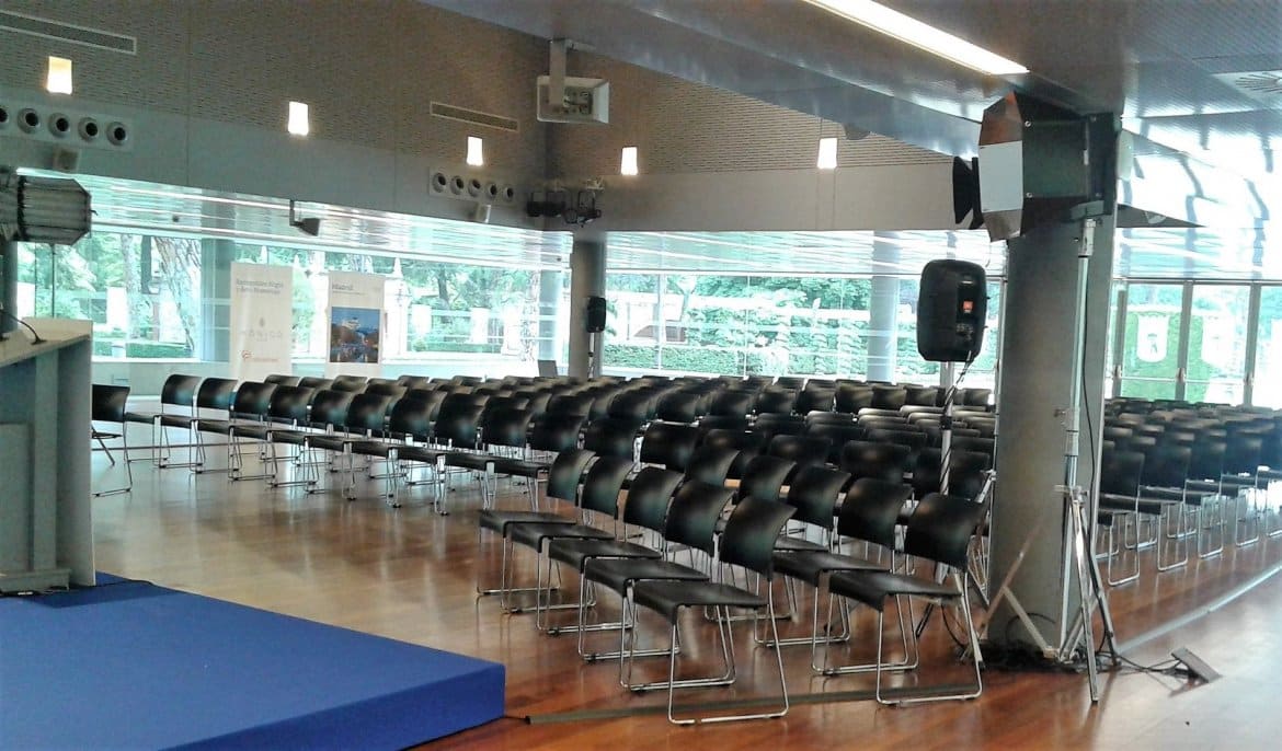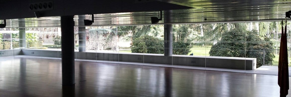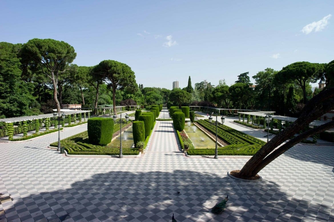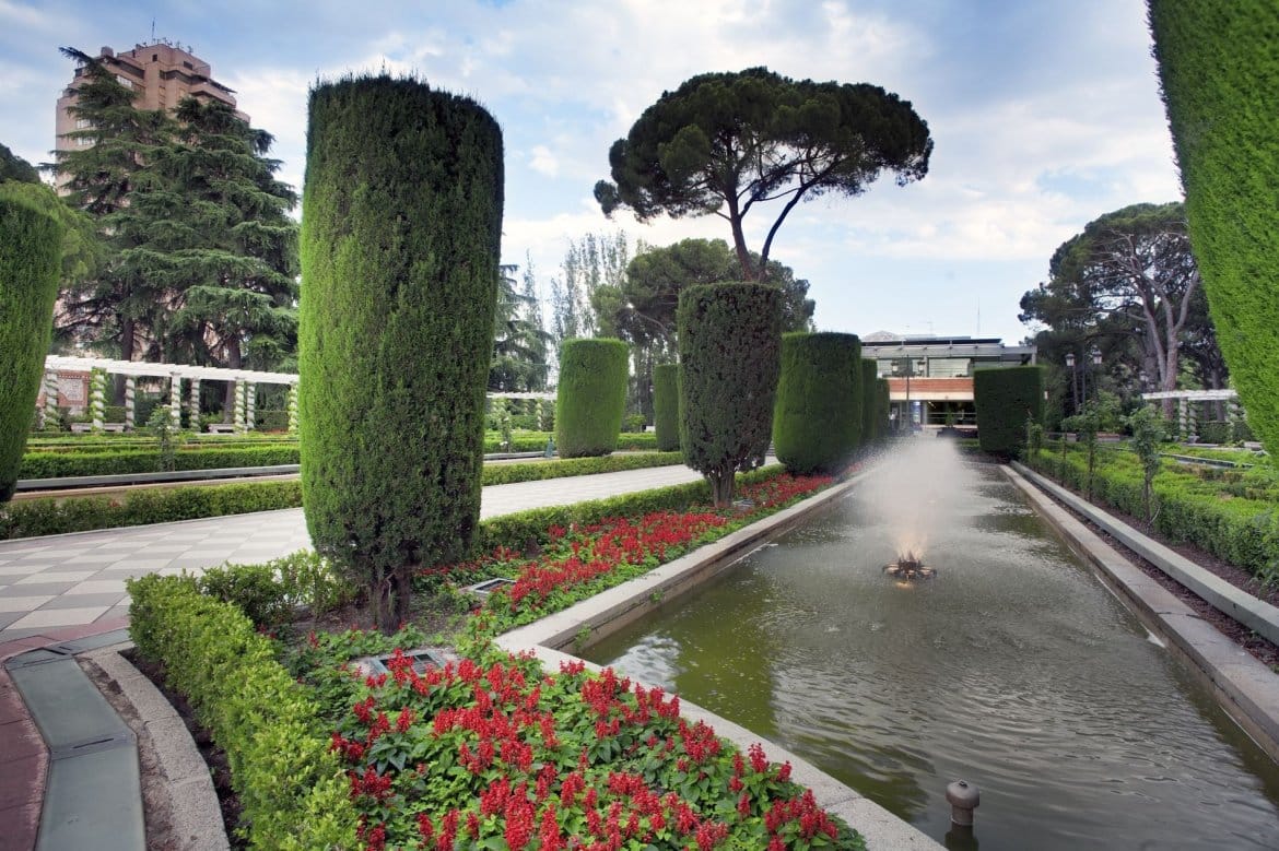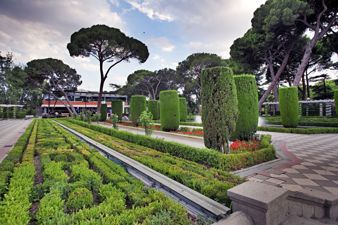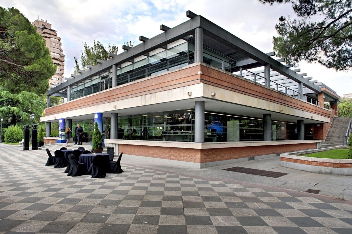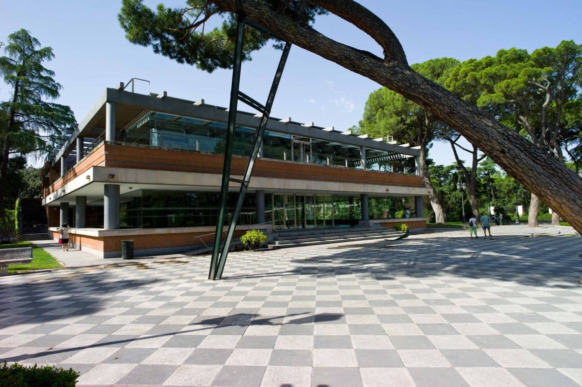 The Cecilio Rodríguez Pavilion is a simple, modern building located in the Cecilio Rodríguez Gardens, inside the El Retiro Park. A two-storey glass and red brick pavilion built over a floor of grey and white tiles. Its interior decoration is appropriate for public acts and events, due to the ample luminosity afforded by its large windows and open spaces that can be adapted for many different uses. A panoramic view of the symmetric Gardens of the same name can be appreciated from the second floor. Geometric gardens in a classical style, with central lakes surrounded by perfectly shaped cypress trees.