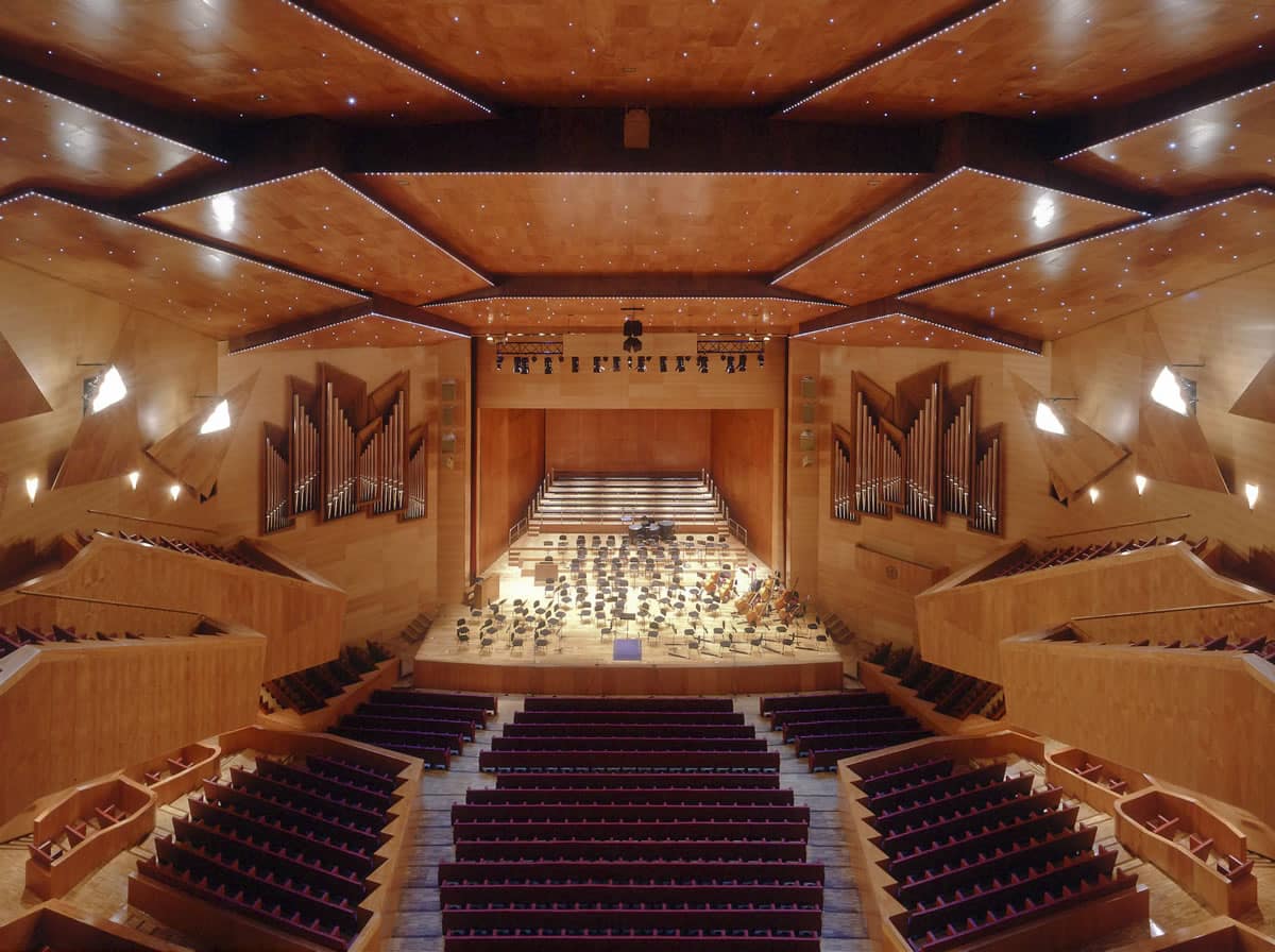 The Euskalduna Conference Centre and Concert Hall (Euskaduna Jauregia) is located in the city of Bilbao, beside the Estuary of Bilbao, built in part of the area that was formerly occupied by the Euskalduna shipyards. It was designed by architects Federico Soriano and Dolores Palacios and construction started in 1994. It was inaugurated in February 1999 and contains a variety of spaces, functioning as a conference center, opera house and concert hall. In 2003 it was decared by the International Congress Palace Association as the world`s best congress center. Euskalduna organizes and hosts a wide range of activities, including cultural, political, business, academic and social events.