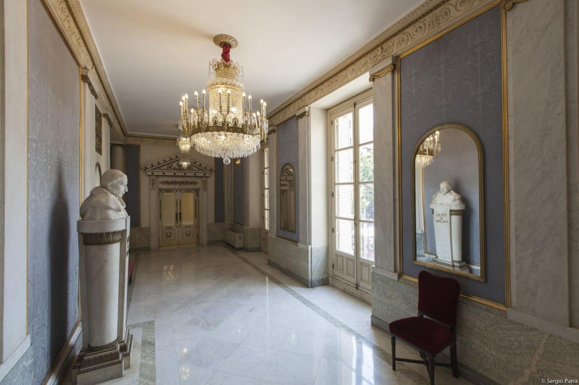 The Teatro Español is a historical theatre located in Plaza Santa Ana, the heart of the Barrio de Las Letras (Literary Quarter). Originally a mediaeval courtyard theatre, buildings were added down through the years until it ended up occupying a total surface of 9,500 square metres.Located in a Neoclassical building with great artistic value, it has different spaces: The Main Hall, a proscenium stage theatre with a capacity for 735 spectators distributed among the stalls and three floors with boxes. The new Margarita Xirgu Hall is a smaller, more versatile and functional theatre with a capacity for 110 people. The Balcony Hall, which grants access to the balconies on the main façade and to another two rooms with views over Plaza de Santa Ana.