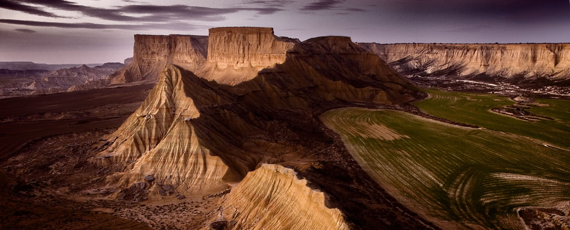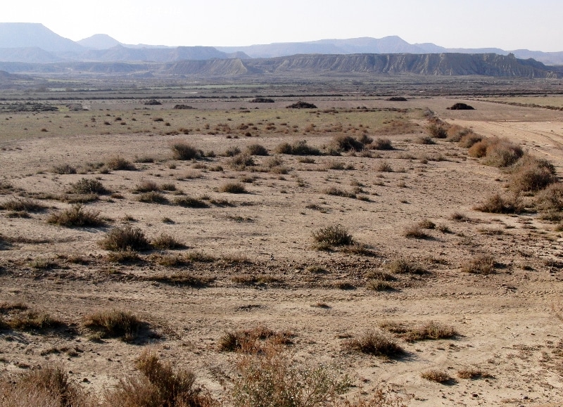 Desierto y paraje natural semidesértico de unas 42.000 hectáreas en el sureste de Navarra, en Arguedas, provincia de Navarra. Con suelos de arcillas, yesos y areniscas, posee formas sorprendentes en las que destacan los barrancos, las mesetas de estructura tabular y los cerros solitarios, llamados cabezos. La mayor parte se encuentra protegido mediante la figura de un parque natural. Desde el 2000 el conjunto fue declarado Reserva de la Biosfera.