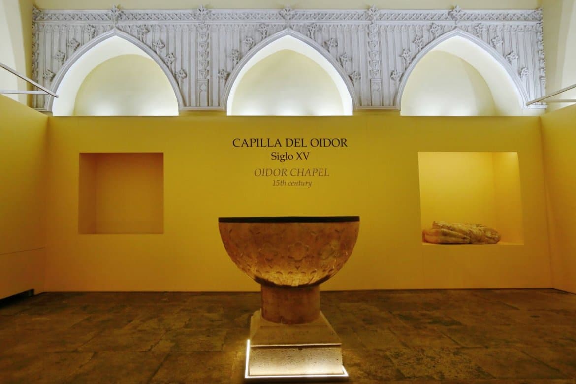 Ubicada al fondo de la plaza de Cervantes podemos ver los restos del ábside de lo que fue la antigua parroquia de Santa María la Mayor, destruida por un incendio en julio de 1936, y su aislada torre, hoy recuperada como mirador.  Pese a su radical transformación, se conservaron algunas de sus capillas anejas, que son las que hoy ocupa la Oficina de Turismo y el centro de exposiciones. El mayor interés se centra en la Capilla del Oidor, llamada así por que fue fundada por el «oidor» del rey Juan II de Castilla, Don Pedro Díaz de Toledo, a comienzos del siglo XV para enterramiento de su familia. A resaltar la yesería del arco de acceso, muy peraltado, con decoración gótica en el intradós. La reja es renacentista, del siglo XVI.