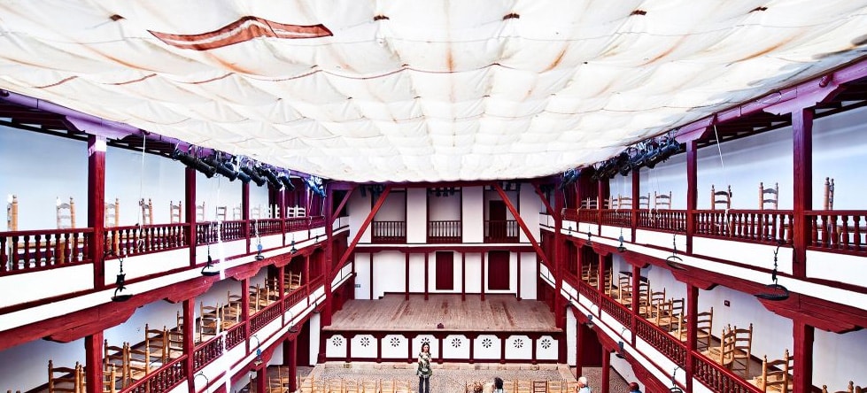 El Corral de Comedias de Almagro fue construido en 1628 y es conocido en todo el mundo por ser el único que permanece activo tal y como era hace casi cuatrocientos años. En su origen, el corral de comedias ocupaba una superficie de 622 metros cuadrados, algo más del doble de lo que se conserva en la actualidad. Se trata de un patio rodeado de 54 pies rectos de madera de color almagre (arcilla rojiza que da nombre a la población de Almagro). Estas apoyan sobre basas de piedra para proteger a éstos de la humedad. Posee dos pisos con aposentos y ganchos para colocar el toldo que protegía a los espectadores en las horas de sol; así como los de las velas o candile…