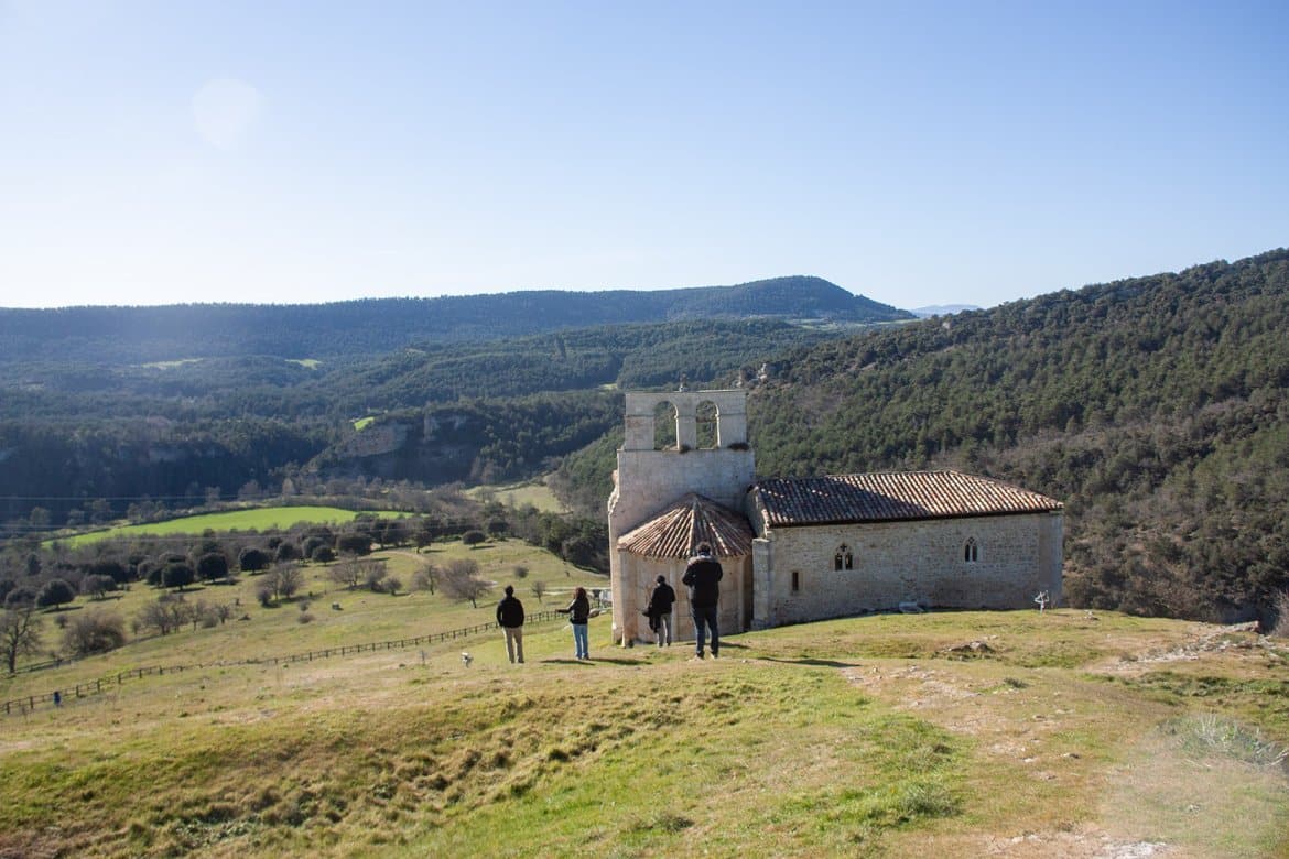 Ermita románica del Siglo XIII, con unos 300 metros cuadrados de planta. Destaca poderosamente la atención su posición sobre un peñasco impresionante desde el que se domina una vista privilegiada.