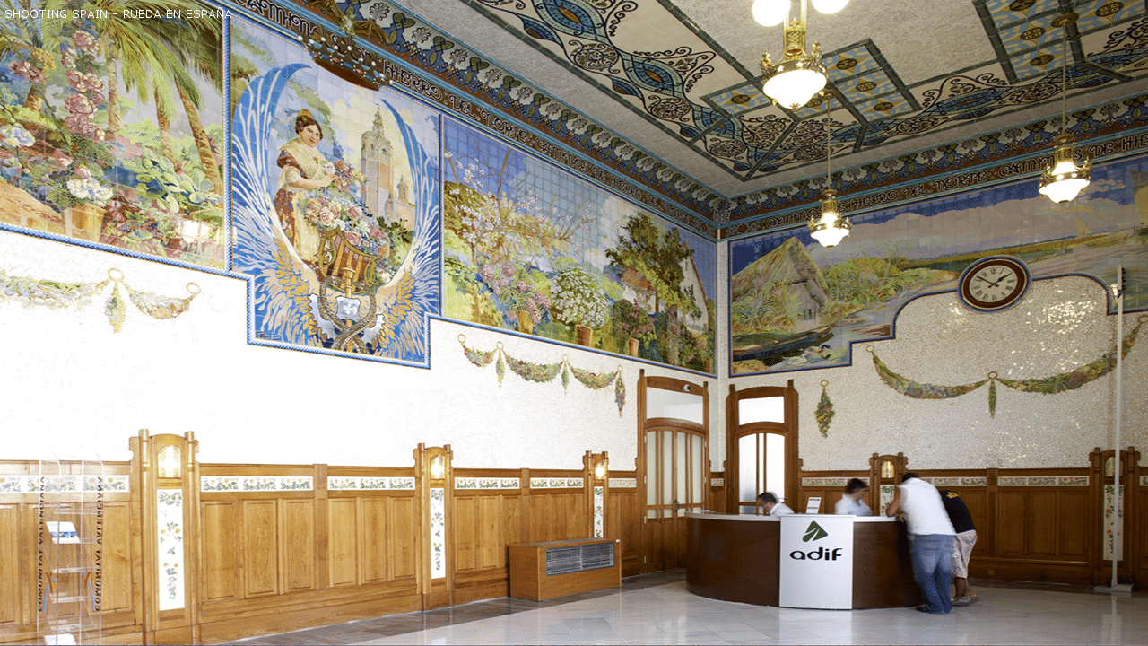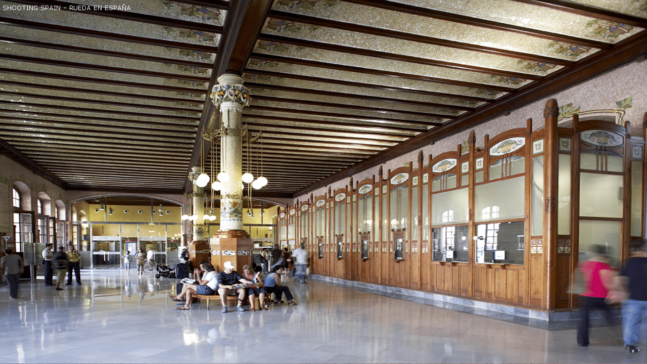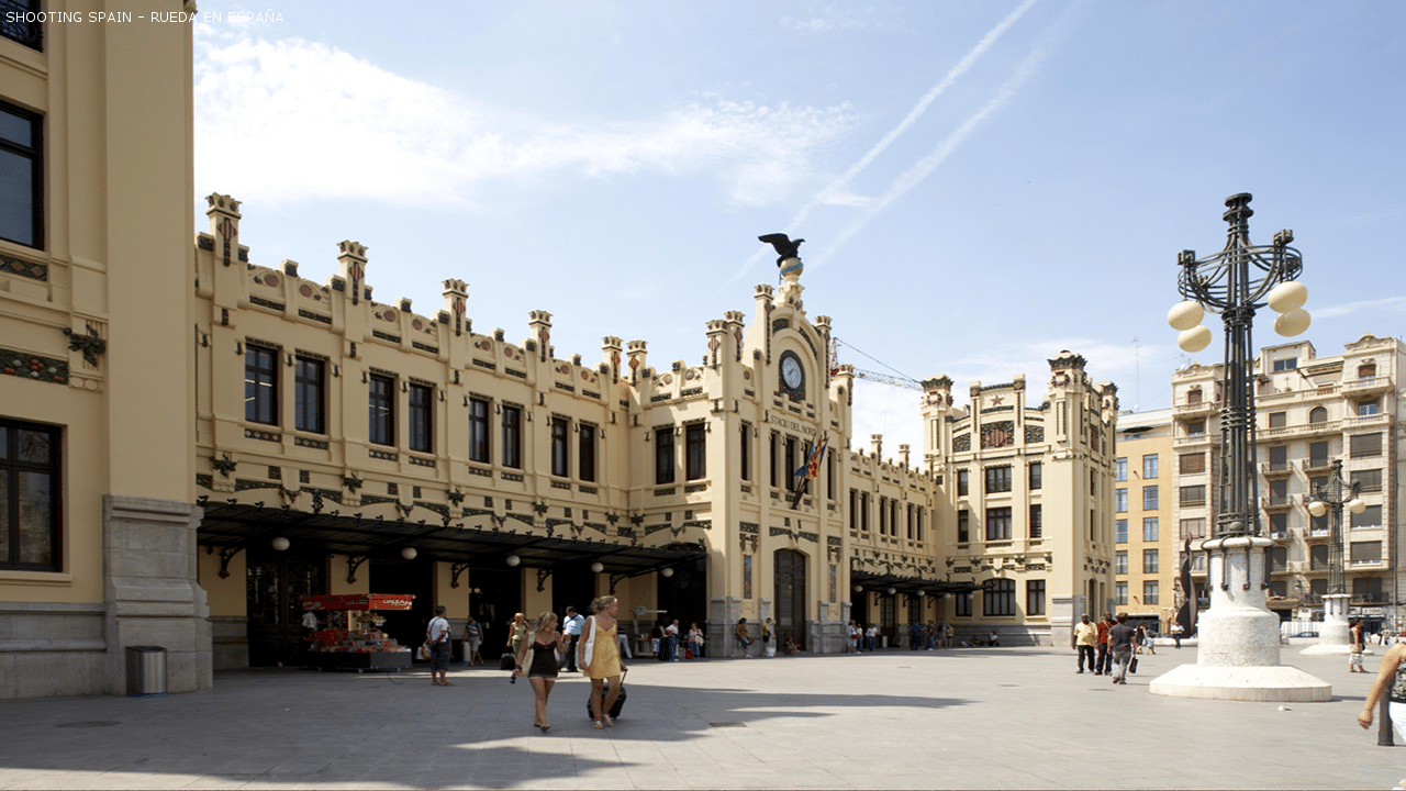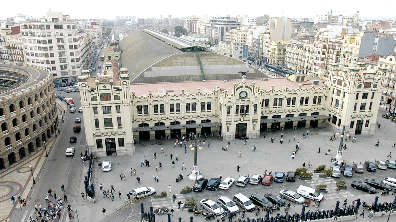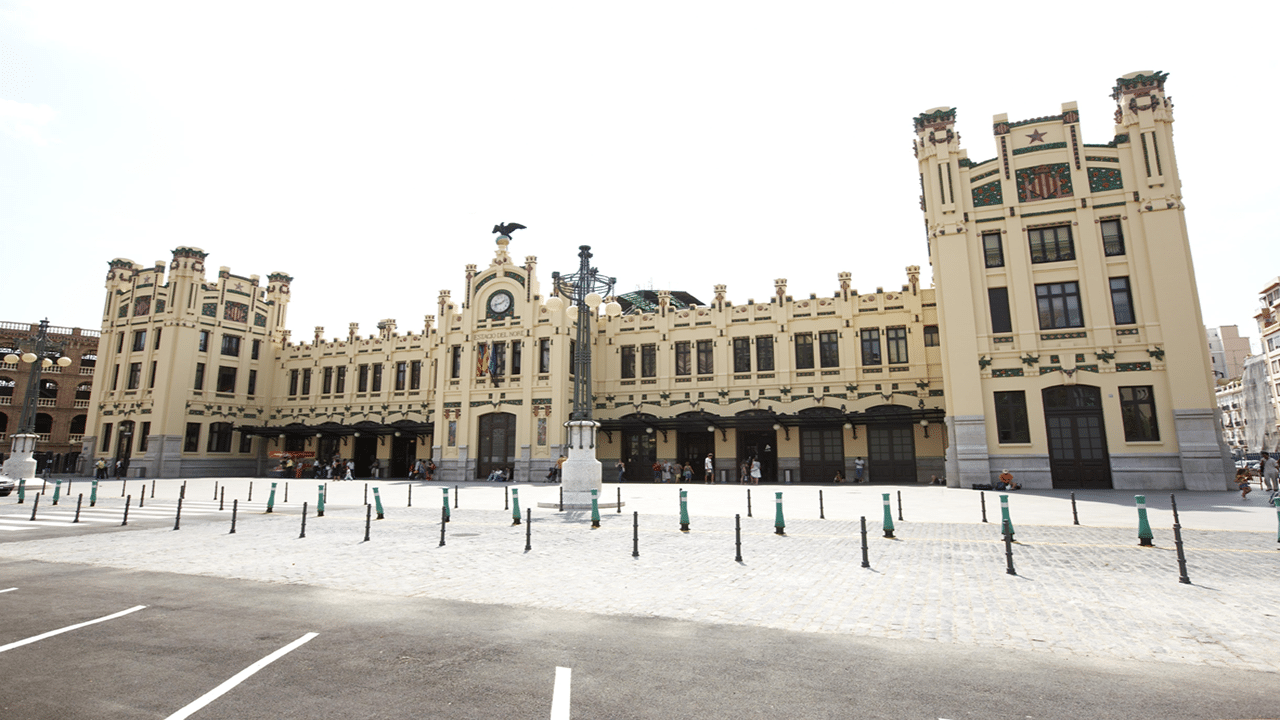 Es una estación terminal de carácter monumental y estilo modernista inaugurada en 1917. Destaca por su riqueza ornamental y sus grandes proporciones. El edificio es de planta rectangular con un gran hangar y un edificio de viajeros. Este edificio en Valencia (Comunidad Valenciana) posee influencias de la vertiente europea de la Sezession, sobre todo Otto Wagner, y reminiscencias del gótico perpendicular inglés junto con lo que luego sería el racionalismo. Su fachada, con motivos vegetales, naranjas y flores de azahar, se inspira en la agricultura valenciana. La ornamentación del interior del edificio se realizó, con cerámicas vidriadas, trencadís y un mosaico.