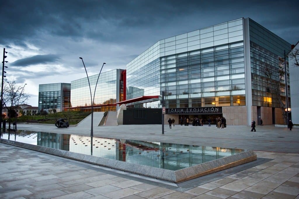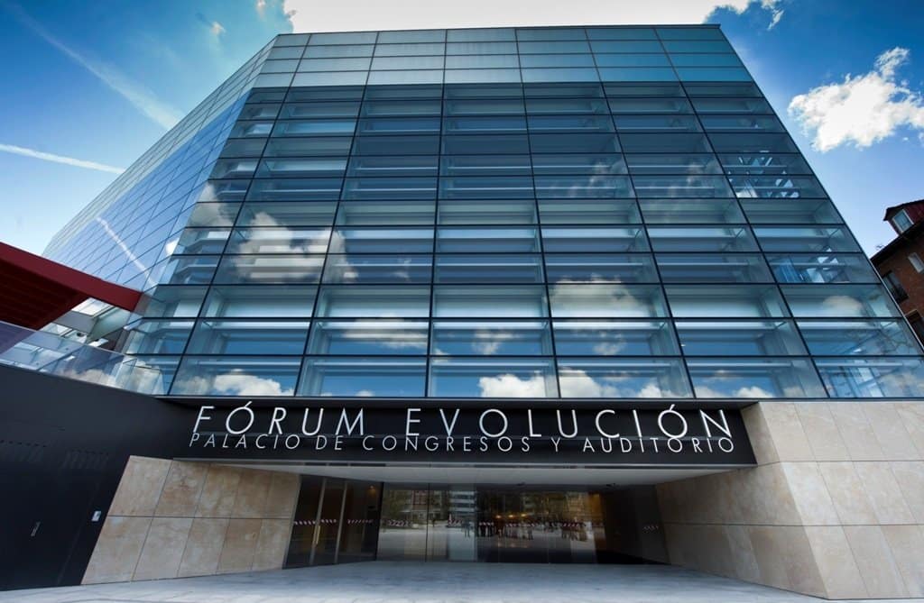 El Fórum Evolución forma parte del Complejo de la Evolución Humana, proyectado por el arquitecto Juan Navarro Baldeweg. Se trata de un espacio moderno, que a través de una arquitectura inigualable, hace de la luz y de los espacios diáfanos su conexión arterial, un lugar de encuentro inspirador, que genera un entorno favorable para el desarrollo del talento y las ideas, un espacio que alcanza otra dimensión arquitectónica gracias a su concepto de horizonte, transparencia y simplicidad de formas. La madera de haya y el hormigón visto, sin revestimiento, son los materiales más utilizados. El Fórum traslada a su interior la filosofía de grandes espacios diáfanos y luz natural continua, así como transparencia y horizonte, a través de 35.000 metros cuadrados repartidos en seis plantas, hasta 21 salas de reuniones de entre 20 y 200 personas y un auditorio de 1371 butacas y otro menor de 492 butacas.