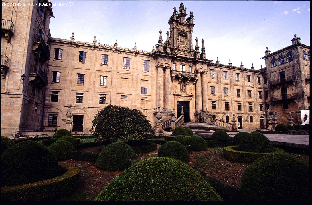 El monasterio es de gran sencillez y frialdad de líneas, sólo interrumpidas por la fachada, a la que se accede por una gran escalinata. La fachada se divide en tres partes con un eje central flanqueado por dos grandes lienzos de cuatro pisos. Situado en Santiago de Compostela (La Coruña, Galicia), su torre de cinco cuerpos contribuye a romper la monotonía de la fachada. La portada, enmarcada por severas columnas dóricas, acoge a San Bieito, rematando con la estructura añadida por Fernando de Casas en la que está el escudo de España entre vieiras y la figura de San Martiño de Tours.