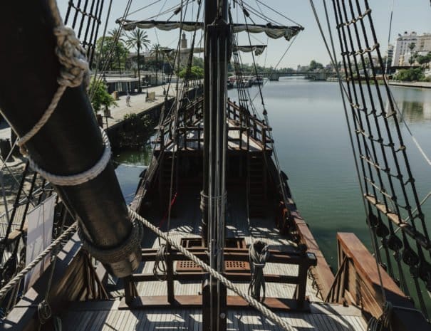 La NAO VICTORIA 500, es uno de los proyectos más destacados de la Fundación Nao Victoria, dentro del programa de Conmemoración del V Centenario de la Primera Vuelta al Mundo. Se trata de una réplica a escala real del que fue el barco protagonista de esta primera circunnavegación, la Nao Victoria, para quedar atracada en el río Guadalquivir, frente al Espacio Primera Vuelta al Mundo. Una réplica cuyas formas y detalles responden a un exhaustivo estudio histórico de cómo pudo ser aquella nao legendaria, a través de fuentes documentales de la expedición, crónicas, tratados de construcción naval, iconografía de la época, etc.