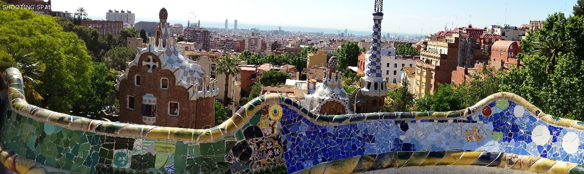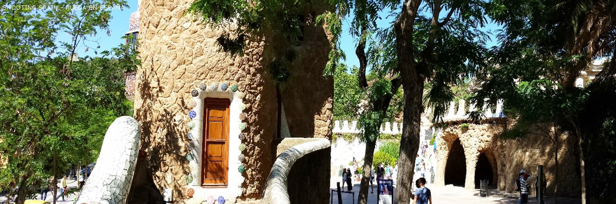 Parque público con jardines y elementos arquitectónicos diseñado por Antoni Gaudí, máximo exponente del modernismo catalán. Situado en Barcelona (Cataluña), está construido entre 1900 y 1914, y en 1984 la Unesco lo incluyó como Patrimonio de la Humanidad. Pertenece a la etapa naturalista del arquitecto, con inspiración en las formas orgánicas de la naturaleza: formas onduladas, parecidas a los ríos de lava, y paseos cubiertos con columnas que tienen formas de árboles, estalactitas y formas geométricas. Posee una imaginativa creación ornamental con pedazos de cerámica o de vidrio a modo de mosaicos de colores (trencadís).