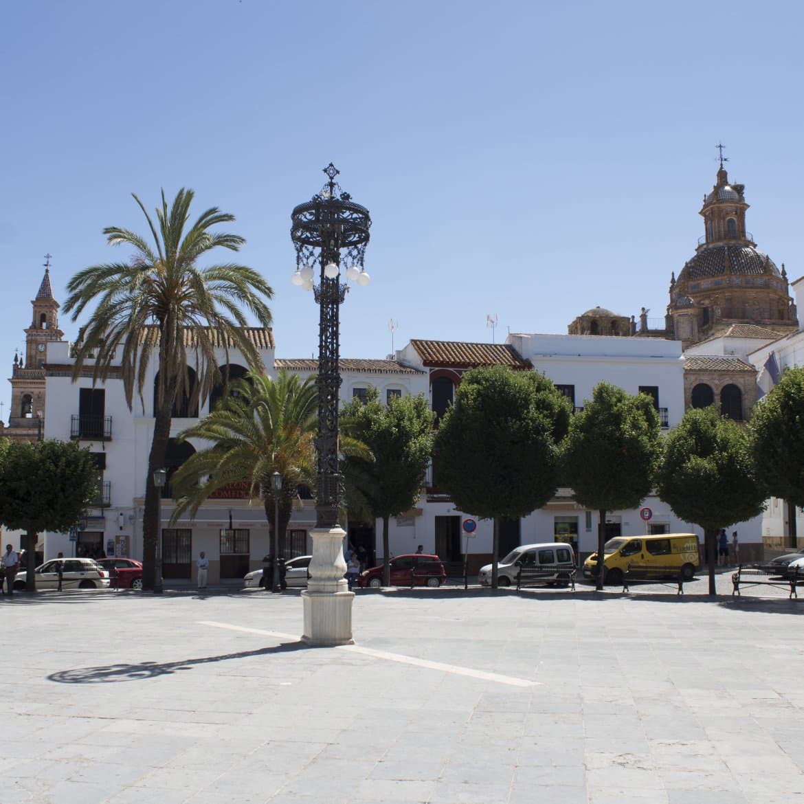 El centro neurálgico de Carmona, está situada en la intersección del cardo y el decúmano, donde se encontraba el foro romano. En el s. XVI tenía forma de rectángulo cerrado, pero, a causa de una equivocación en un proyecto de restauración, adquirió apariencia circular. Desde los balcones se podían presenciar las celebraciones públicas, entre las que cabe destacar las corridas de toros.