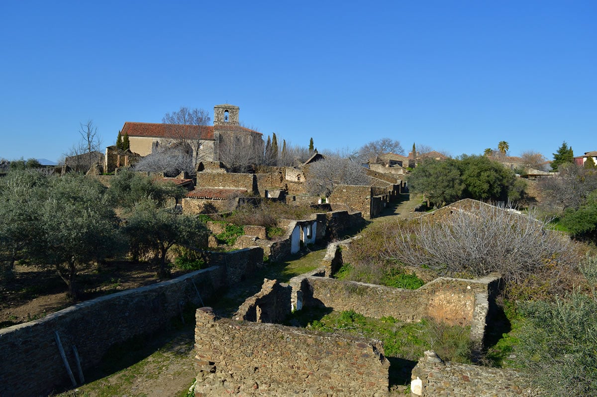 Declarado Conjunto Histórico Artístico, el pueblo abandonado de Granadilla, de origen feudal con carácter militar y defensivo, fundado por Fernando II de León en 1170,es considerado como el tercer gran conjunto amurallado español, al preservar intacta la mayor parte de su muralla y conserva calles y casas en perfecto estado, gracias a los trabajos de rehabilitación, aunque también podemos pasear por la zonas del pueblo que siguen en ruinas. Desalojado tras declararse inundable tras la construcción del Embalse Gabriel y Galán, se haya asentado sobre una colina a modo de península, siendo un paso estratégico en la antigua Vía de la Plata camino a las Hurdes.