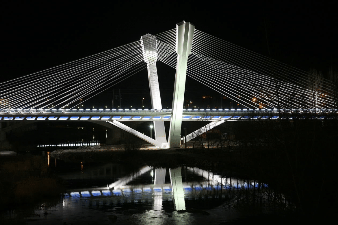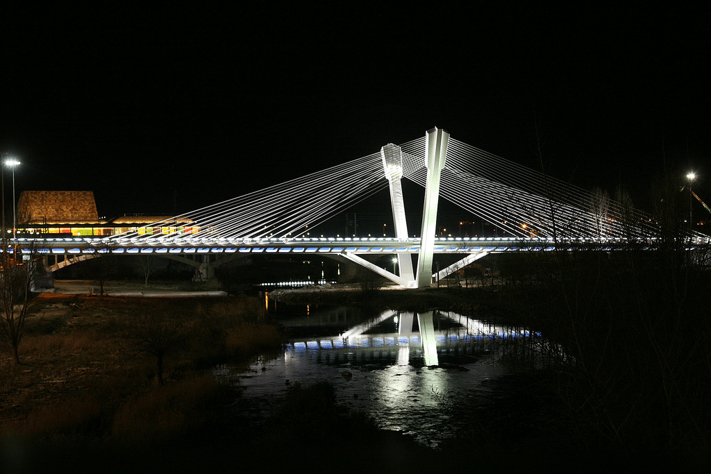 Es un puente sobre el río Segre de la ciudad de Lérida. Se encuentra situado de forma paralela a la actual estación de ferrocarriles, y también de forma paralela al puente del ferrocarril que cruza el río Segre situado a 75 metros. El puente es obra del ingeniero navarro Javier Manterola.