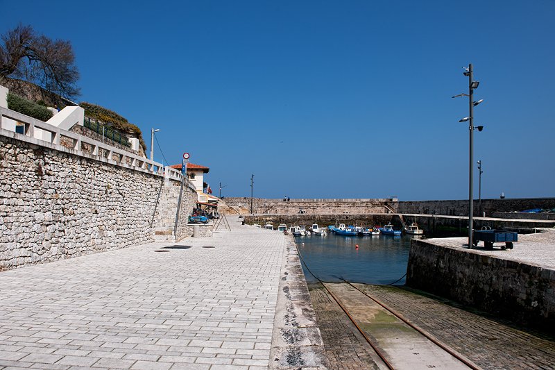 El puerto esta defendido de los temporales del Noroeste, Norte y Nordeste, por un alto dique poligonal, que configura una dársena interior. Ha acogido numerosos rodajes debido a sus características