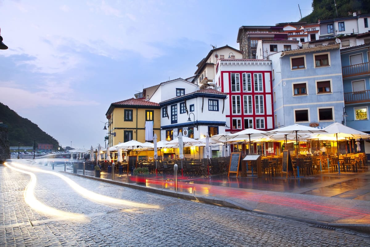 La villa de Cudillero (Cudillero, Asturias) es un relevante puerto pesquero tradicional y durante los meses de verano es en sí misma un importante reclamo turístico. La elevación de la rasa litoral de unos 100 metros sobre el mar, provoca un bonito contraste y la caracteristica disposición en forma de anfiteatro de las casas de la villa.